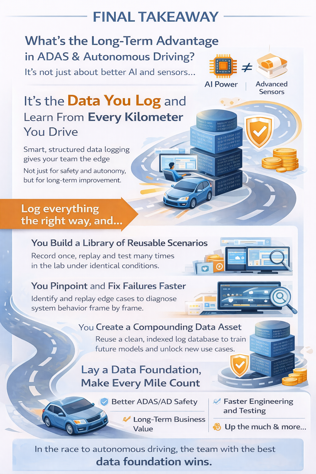 Without robust sensor data logging, every test drive is a one‑off experiment. With it, each kilometer becomes a reusable asset for training, validating, and improving ADAS and AD functions.